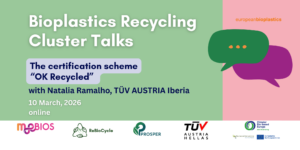 Spanning from September 2025 to March 2026, the Bioplastics Recycling Cluster Talk series focuses on How to set up cost-competitive sorting and recycling schemes for bioplastics? The talks are short, peer-to-peer, scientific talks featuring experts from three research and innovation projects funded by the CBE Joint Undertaking: ReBioCycle, MoeBIOS and PROSPER.