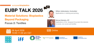 This edition of the EUBP Talks explores how Designed Enzymatic Biomaterials and other bioplastics are entering woven, non-woven, and broader textile applications. From fibre formation and material functionality to real-world use in garments and printing technologies, our experts will provide insights into processing, scalability, and market potential.
